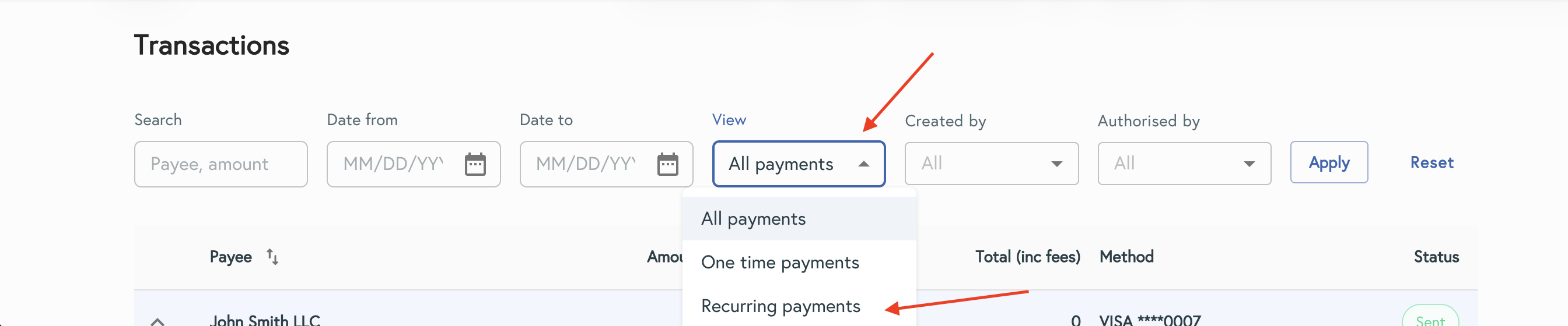 Navigate to Payments → Transactions