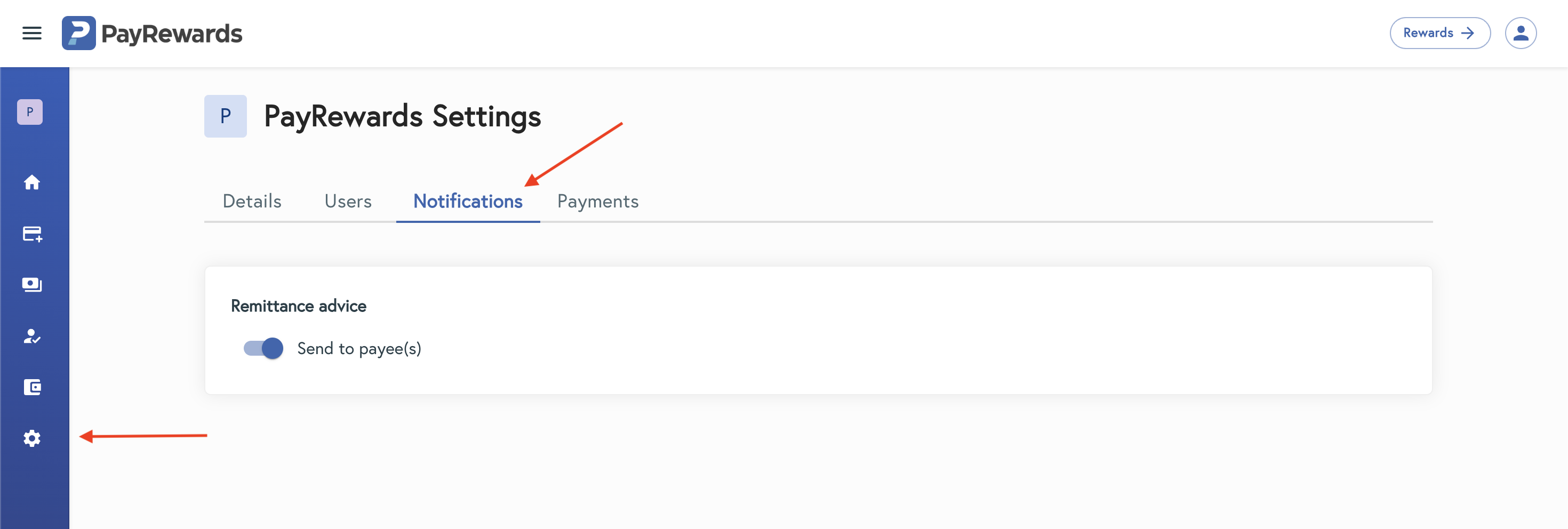 If remittance advice emails should not be sent directly to payees, this feature can be disabled by navigating to Settings → Notifications and turning the option off.